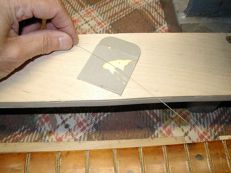 ... and pressed down into the fret slot - this also pushed out the ends of the fret, which further seats the fret tang barbs a bit sideways into the fret slot, for a more secure grip.
